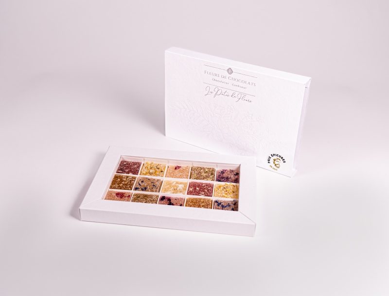 Le Coffret Éclosion signé Fleurs de Chocolats est bien plus qu’une gourmandise : c’est une véritable invitation au voyage sensoriel. Composé de 15 pâtes de fleurs biologiques, ce coffret célèbre l’union poétique entre la nature et l’art de la confiserie artisanale. Chaque bouchée est un hommage aux fleurs et aux fruits, dans une version 100% végétale, sans colorant ni arôme artificiel.